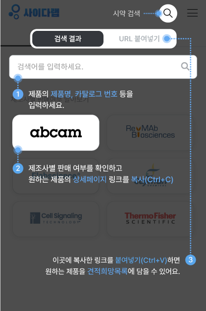 원하는 제품의 제품명, 카탈로그 번호 등을 검색하세요.